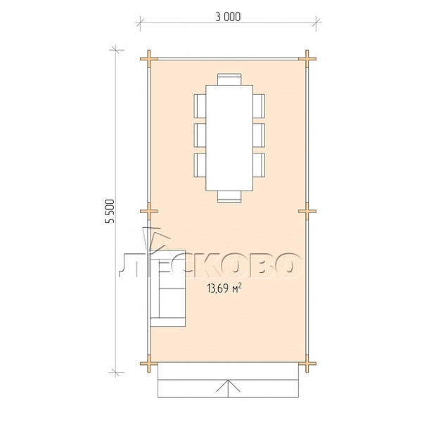 Беседка серия "БС" 5,5х6м 29,7 м2 мини брус 65мм.