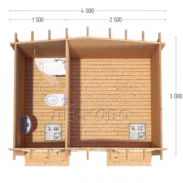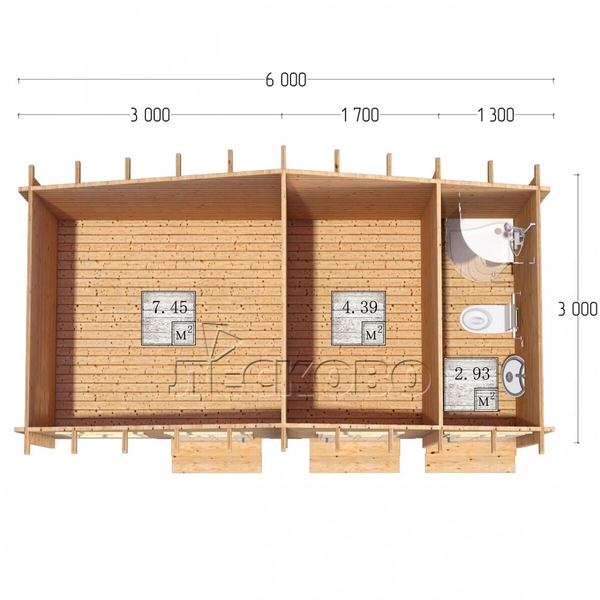 Хозяйственный блок серия "ХБ" 6×3м 15.4м2 мини брус 45мм.