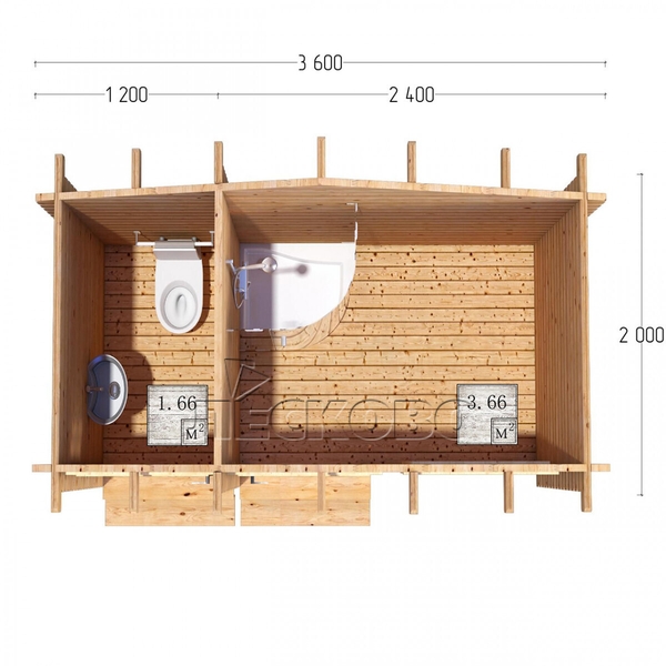 Хозяйственный блок серия "ХБ" 3.6×2м 5.6м2 мини брус 45мм.